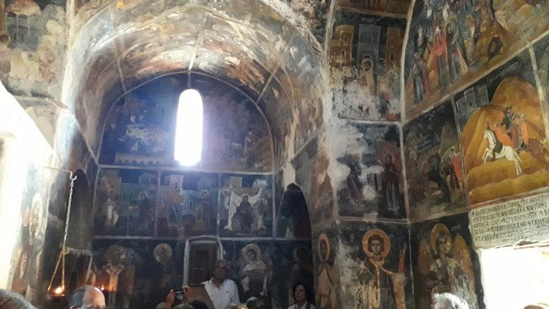 Συνεχίσαμε για την Αγία Τριάδα. Ένα ξωκλήσι πραγματικά κόσμημα του 13ου αιώνα (Παλαιολόγια περίοδος), πιθανόν ιδιωτικό. Σταυρεπίστεγος, μονόχωρη Βασιλική, με κατεστραμμένες τις τοιχογραφίες στο εσωτερικό του ναού.