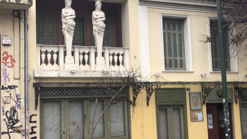 Στη συνέχεια κατευθυνθήκαμε προς το Ινστιτούτο Ελληνικών Μύλων στην οδό Αγίων Ασωμάτων, σε ένα όμορφο κτίριο γνωστό για τις Καρυάτιδες της πρόσοψής του.